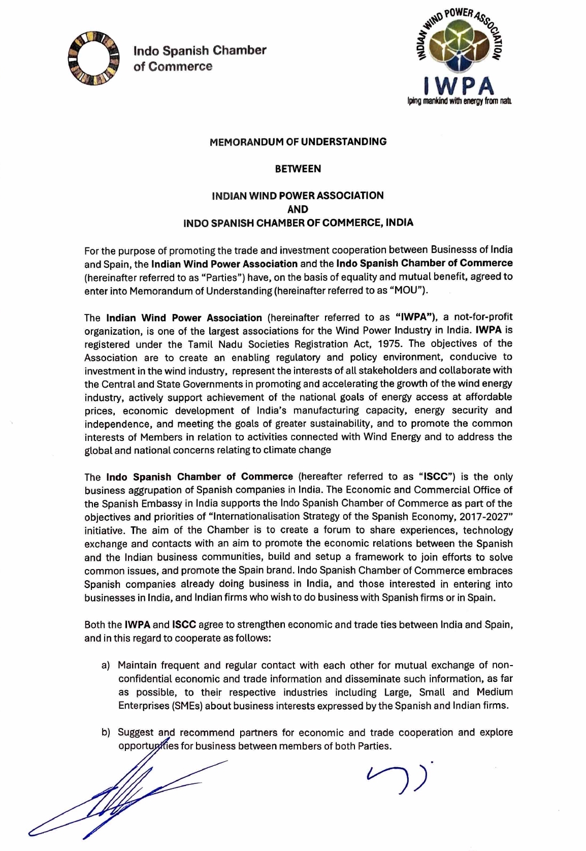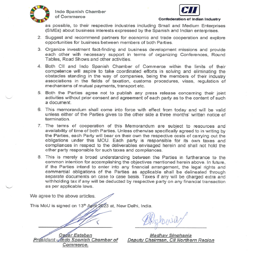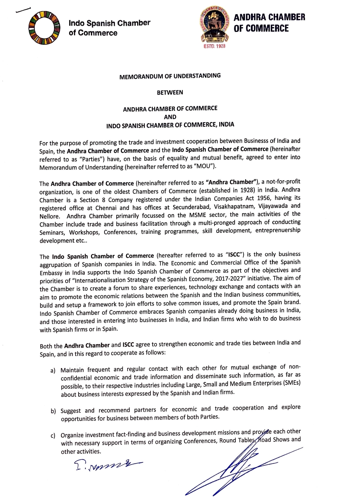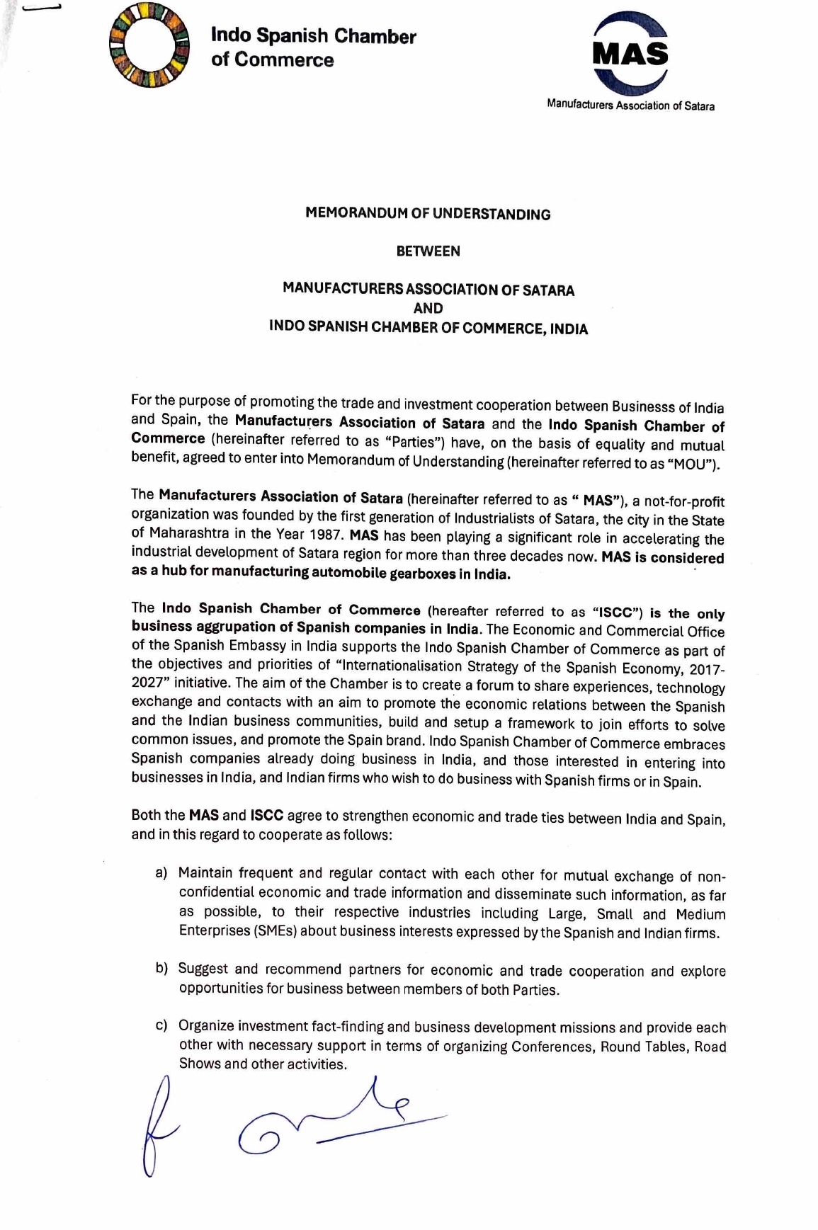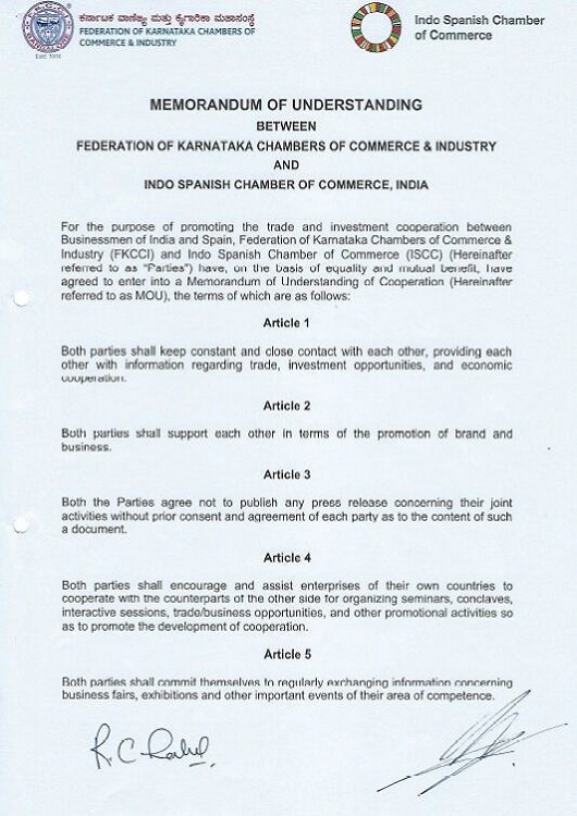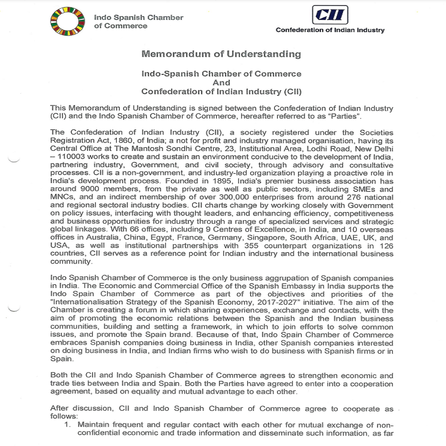 Developing MoUs with Spanish and Indian company associations and industries federations, to be the reference player and main gate to the Spanish business community in India, and promoter of bilateral relations for Indian companies willing to do business in Spain