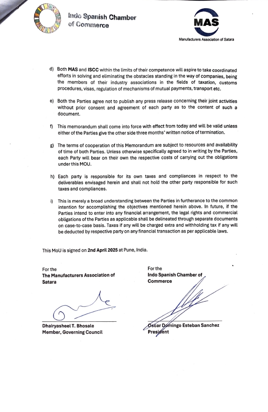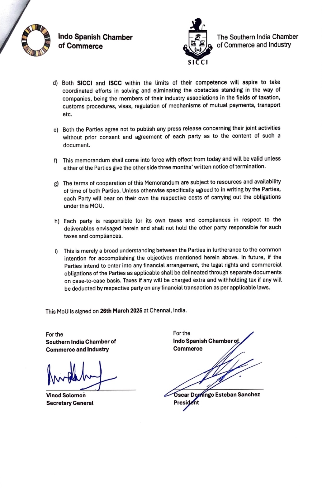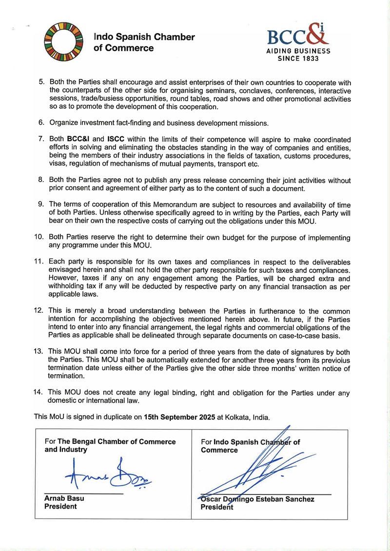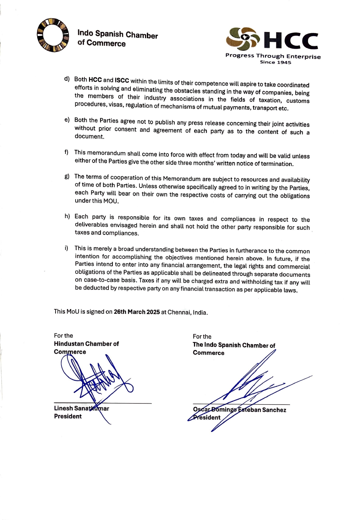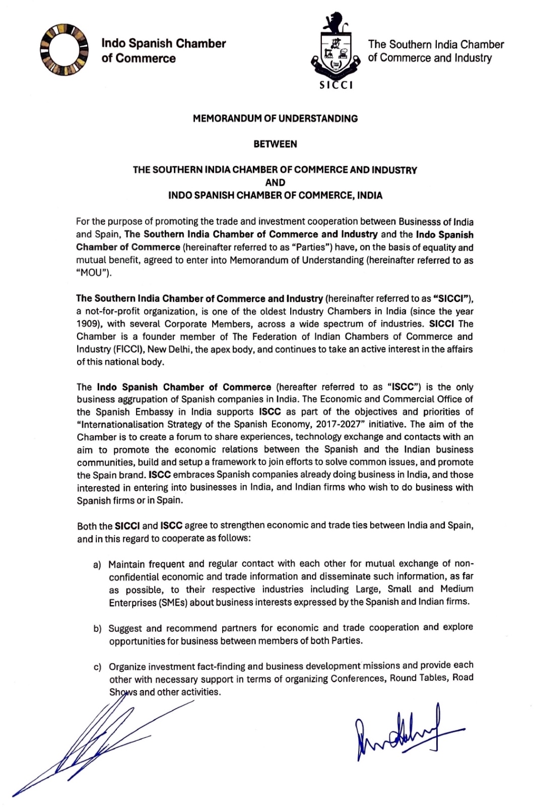 Developing MoUs with Spanish and Indian company associations and industries federations, to be the reference player and main gate to the Spanish business community in India, and promoter of bilateral relations for Indian companies willing to do business in Spain