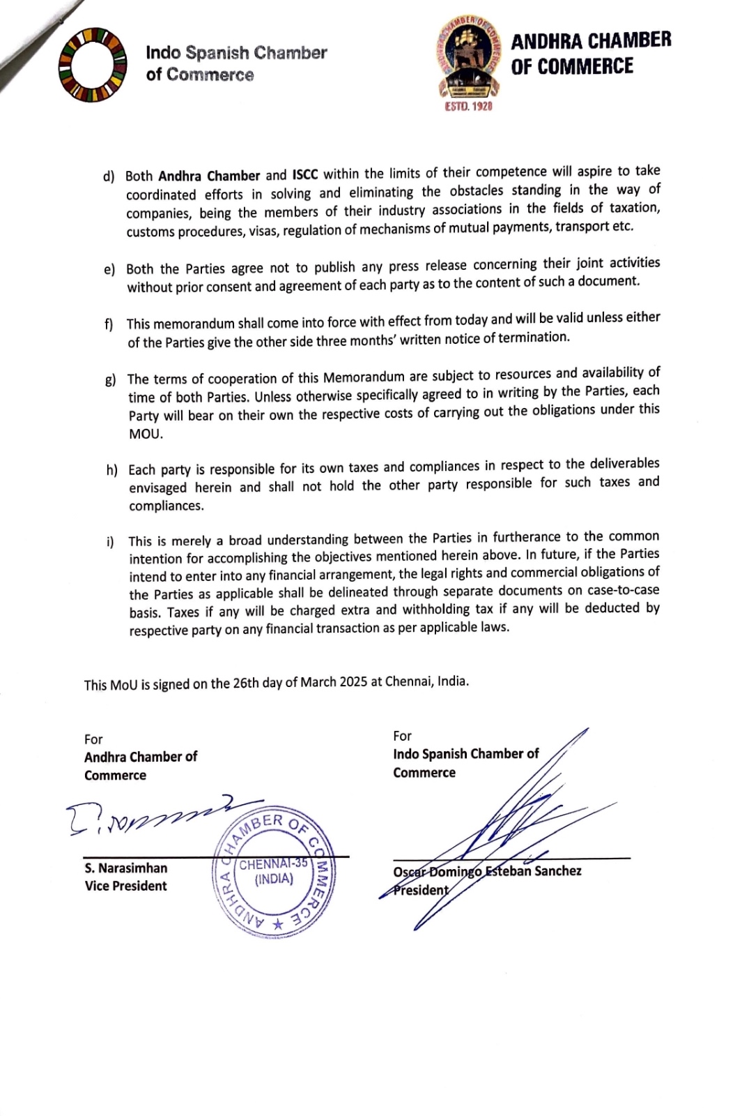 The Indo-Spanish Chamber of Commerce is a private, non-profit organization where Spanish and Indian business firms exchange knowledge and experience on how best to confront the challenges of operating in India, and for Indian companies, in Spain. Working together, the Chamber helps its members to connect their business with other businesses and with opportunities. Endorsed by the Spanish Government and by the Economic and Commercial Office of the Spanish Embassy in India, as part of the objectives and priorities of the “Internationalisation Strategy of the Spanish Economy, 2017-2027” initiative, the Chamber enhances economic ties between Spain and India.As an important milestone and token of all the above, Indo Spanish Chamber of Commerce has been recognised by the Spanish Government as the official Chamber of Commerce in India in August 2019.