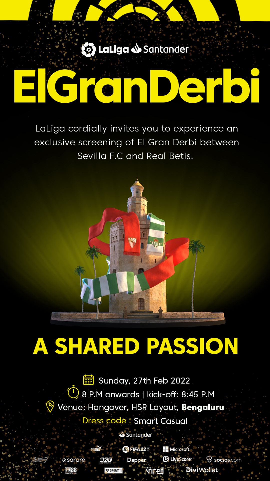 Exclusive screening of El Gran Derbi between Sevilla F.C. and Real Betis by LaLiga at Hangover, Bangalore