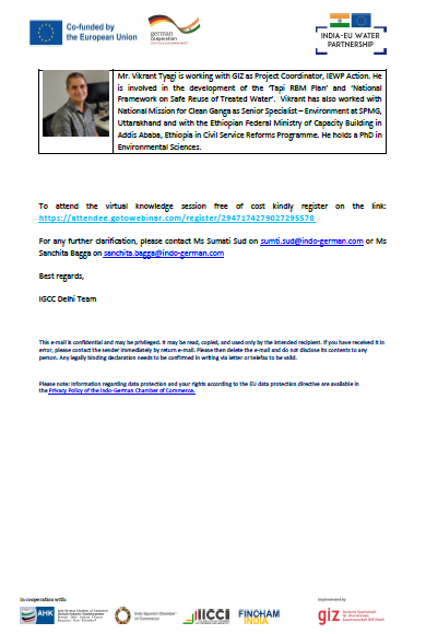 ISCC with The Indo-German Chamber of Commerce (IGCC) organised a webinar for European companies in India working in the water sector