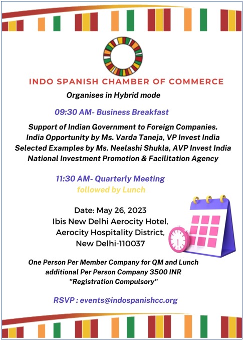 ISCC members were invited to attend ‘India-Spain Business Meet’ held on official visit of Ms. Xiana Mendez Bertolo, the Spain Secretary of State for Trade.