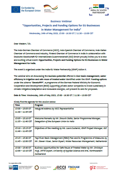 ISCC jointly organized a virtual event in collaboration with The Indo-German Chamber of Commerce (IGCC), the Indo-Italian Chamber of Commerce and Industry & Deutsche Gesellschaft für Internationale Zusammenarbeit (GIZ) GmbH. The webinar was for European companies in India working in the water sector.